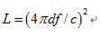 其中:L代表路径损耗,d代表收发端的距离,f代表无线电波频率,c代表光速,即3×108m/s。