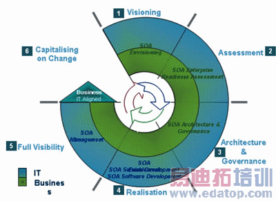 SOA的建设是一个长期的过程,涉及组织、业务、流程和技术等各方面,须进行全生命周期管理。