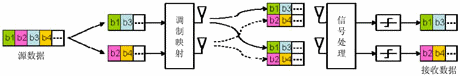 ● 传输分集技术,以空时编码(Space Time Coding)为代表:在发射端对数据流进行联合编码以减小由于信道衰落和噪声所导致的符号错误率。空时编码通过在发射端增加信号的冗余度,使信号在接收端获得分集增益。