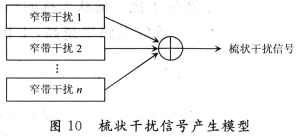 梳状干扰就是在预干扰的频带内施放多个窄带干扰信号,特点是不需要复杂的侦察检测系统,适用于干扰各种通信系统,其模型如图10所示。