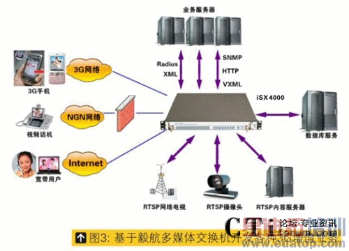 随着中国3G用户的日益增多,基于3G网络的增值业务也日益受到各大运营商重视,而且运营商也寄希望于形形色色的增值业务能够带动3G用户的增长,针对这种状况以及国内三种运营商制式(TD-SCDMA、WCDMA、CDMA2000),毅航发布专门针对3G增值业务或2G-3G混合增值业务的真正一体化开发平台,基于此平台开发者无需关心3G网络接口、3G网络制式、3G网络信令及3G视频编解码而直接开发3G业务流程即可,是目前国内外最简单、单机承载容量最大的3G增值业务开发平台,是在毅航通信 iSX4000 通用业务平台的基础上增加视频模块即可将原来在2G上的所有应用平滑升级到3G,升级周期只需要1-2周即可,因此基于毅航增值业务平台的3G示范应用也很快会在中国三个不同制式的3G网络上开通。