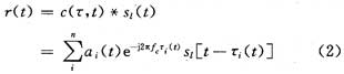 式中,i为路径标号,n为路径总数,fc为信号载频,ai(t)是第i条路径上接收信号的衰减因子,τi(t)是第i条路径上的传输时延,c(τ,t)表示在t-τ时产生的脉冲经过信道后t时刻引起的响应。