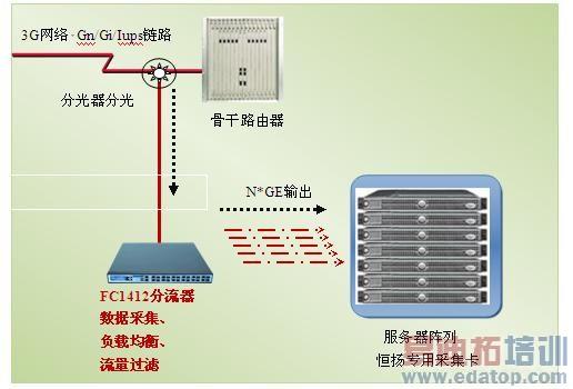 恒扬科技专门针对3G业务推出的分流解决方案,一方面可以通过恒扬科技OTAP(分光器)和ETAP 将骨干链路分光接入到FC1412分流器,以实现多种链路的汇聚、收敛及负载均衡,另一方面借助于恒扬科技专用的数据采集卡,可以同步实现后台数据的高性能处理,打造高效率的业务分析系统。