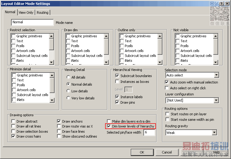 NOTE: The Layout Editor Mode Setting dialog box may change from version to version, but the option is the same.