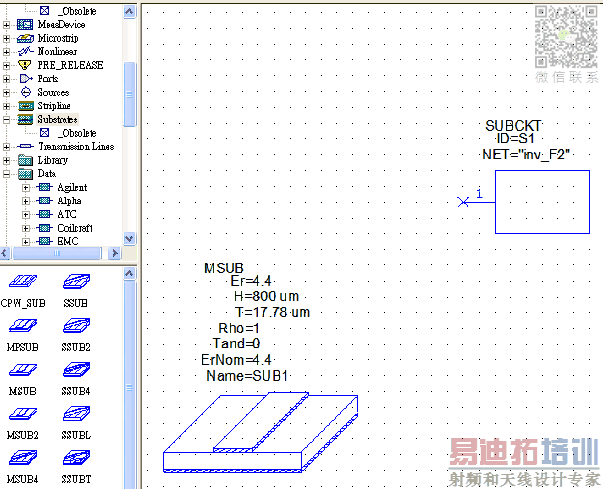 步骤一:同下图表示,先将S1P的模型叫出,然后另外叫出微带线的基板,并输入其参数为何?