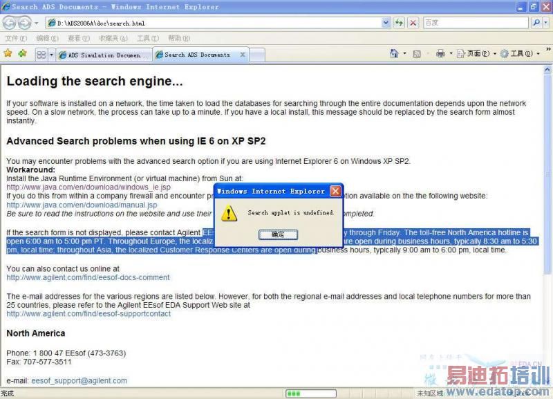 前段时间用ADS2003,那个自带帮助里的 search 不能用,提示是与ava虚拟机相关的信息,还以为是软件编写的问题,最近因为需要,安了ADS2006A,那个网页版的help里的安装信息依然是不能用,因为ADS自带的帮助过于强大,少了search不免多了几分麻烦,也相信或许还有朋友也遇到过之类的问题,所以想拿出了和大伙讨论一下,也希望有知道的朋友能告诉一声,谢谢了:)