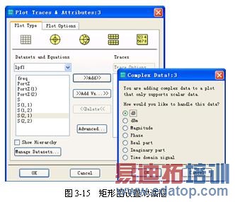 是以方块图形显示数据,单击该图标后会自动弹出矩形图设置对话框,选择要显示的S(2,1)参数→单击按钮