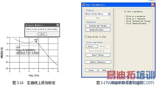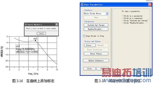 (6)调整到仿真曲线达到技术指标后,单击按钮 ,出现是否更新相应元件的参数值的对话框。单击按钮 ,保存该参数,如图3-20所示。