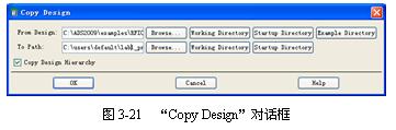 (2)从范例目录中复制一个设计到项目“lab1”中。在ADS窗口中,执行菜单命令【File】/【Copy Design】,出现复制设计对话框,如图3-21所示。