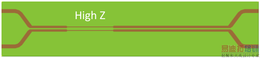图2为一个有20厘米长100欧姆差分对的评估板,100欧姆差分对的中间是3.6厘米长的高阻抗差分对。我们可以获取评估板的四端口S参数,其范围是10MHz到10GHz。那么如何利用ADS中的S参数计算TDR阻抗?