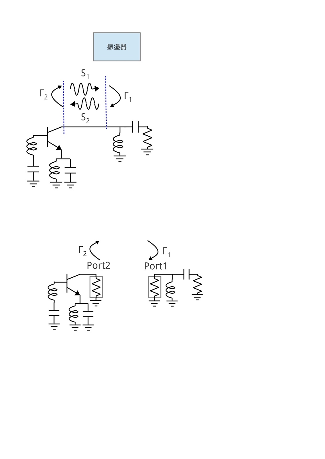 条件1:会振荡的电路,都是先从状况1 (| Γ1 × Γ2 | > 1),再变成稳定的状况2 (| Γ1 × Γ2 |= 1)。