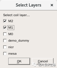 填写好线宽、线距、匝数、x/y尺寸后,指定衬底文件、选择用哪些金属图层来画电感: