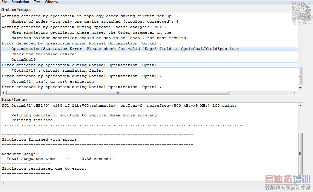 I am trying to optimize VCO phase noise but I face expression error how can I solve it ?