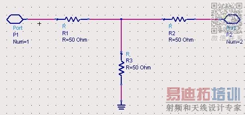 先计算好T型衰减器的三个阻值,然后用Term代替你上图的Port