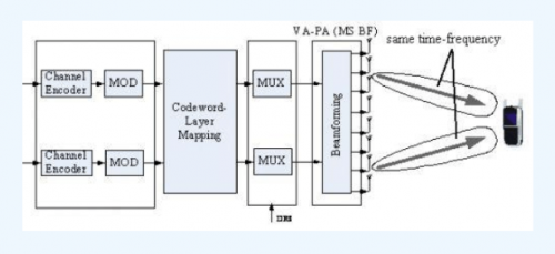 多用户双流波束赋形技术,利用了智能天线的波束定向原理,实现多用户的空分多址。