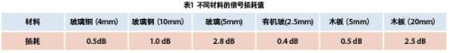 通过测试,对于GSM1800系统来说,各种材料的信号损耗大致如表1所示。