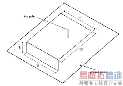 根据以上各种近似模型,已有不少文献中对PIFA天线进行近似分析,并得到很多有指导意义的结论。假设分析采用的PIFA天线结构参数如下图所示,则以下将总结相关结论。