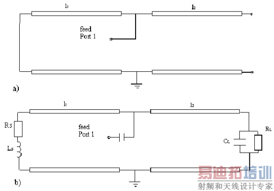 PIFA天线的传输线近似模型如下图所示。在忽略接地片和馈线的分布效应,PIFA天线等效于两段长度分别为