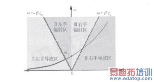 图3.合左手微带天线的色散曲线