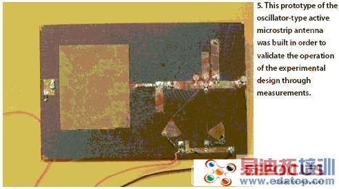 振荡器式有源微带天线集成了具有微带天线的有源器件来产生稳态振荡。该振荡器采用有源器件的负阻特性将直流电源转换为射频功率。已经研制成功这种有源天线的集成版本来用于在低功率水平的传感器应用。进一步的研究已设法克服这种固态源设计的功率限制,这是因为结合空间电源技术。该振荡器包括了结合微带天线的有源器件,该天线同时既是确定振荡频率的负载,又作为向空间辐射产生射频功率的器件。适当选择有源器件的工作点对工作性能而言很重要。