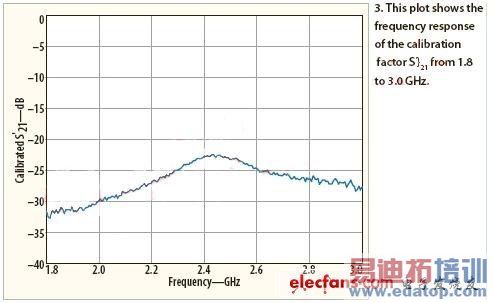 图3表示了从1.8至3.0 GHz校准系数的响应。然而,考察从2变化到4mm不同距离校正因子的变化,而这些测量表明,在2mm距离初读取的幅度约为0.25dB。还考察了在天线输入回波损耗处该传感器的影响,并发现小于0.01 dB,有赖于同轴馈线的使用。