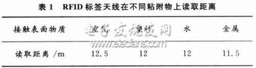 实验测量表明,该天线在金属表面读取距离为11.5m,在不同物质表面读取距离基本不变,且性能稳定。