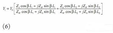 因为电场沿 L方向非均匀分布,故可通过改变同轴馈点在 L方向上的位置来改变馈电点的阻抗大小,达到信号的匹配状态。馈电点位置的导纳如公式(6)所示: