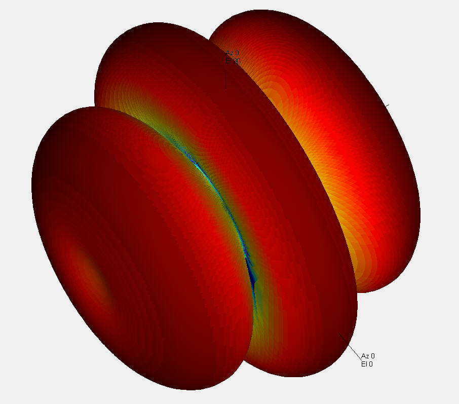 想做个微带二元天线阵,方向图大概如下所示,两个最强辐射方向成90°,请问改变两阵元间距可以实现吗?还是要其他途径实现?