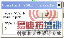 比如天线的阻抗在500MHz是150-23j,图中1点的位置就是150-23j。 要与50欧匹配,TOOLS-CIRCLES-VSWR,,VSWR小于2.只要匹配到圆内就算OK。