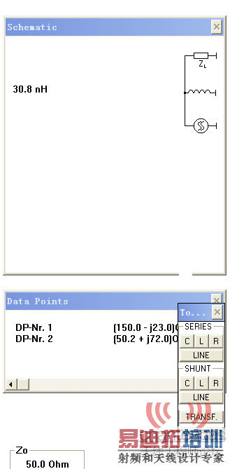 理论上说,通过串并电容电感,可以完成天线的匹配。但有时,天线的阻抗太靠近SMITH的外圈,接近开路或短路点时,就不太好匹配了。通过要通过阻抗变换器来改善。