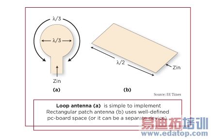 图1:环形天线(a)易于实现。矩形块天线(b)使用规划得很好的PCB空间(它也可是一个分立器件)