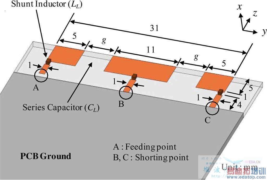 看过类似的天线, 好象中间是feed, 两边是short,