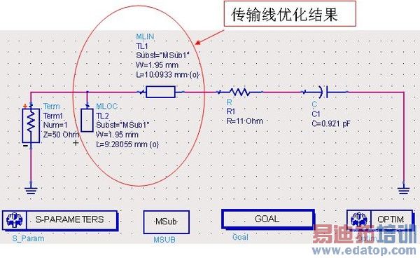 在ADS的schematic已完成了较为理想的阻抗匹配(如下图)(感谢坛子里的兄弟的指导)