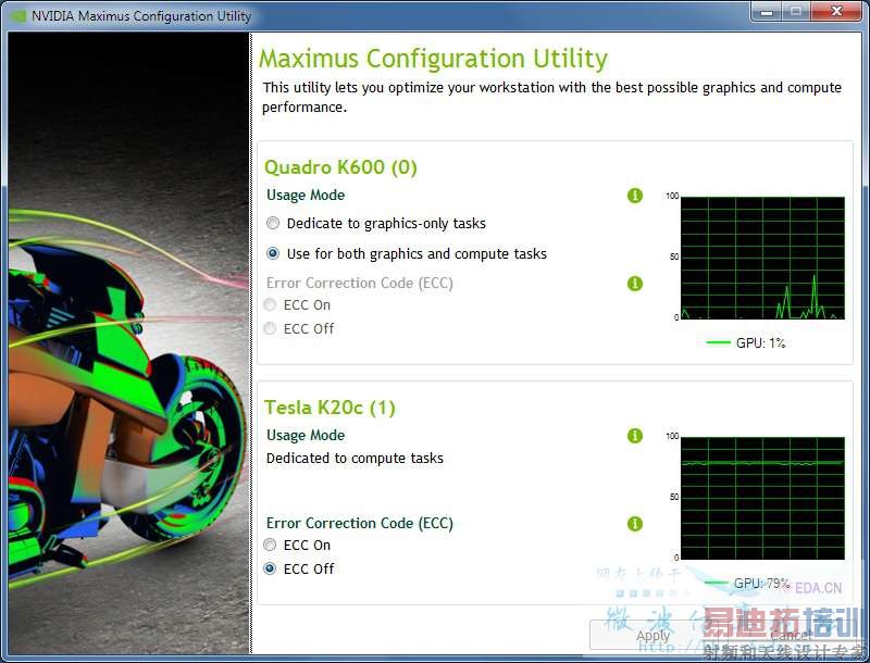 在NVIDIA Control Panel里打开NVIDIA Maximus Configuration Utility,就可以看到每个GPU的使用率。
