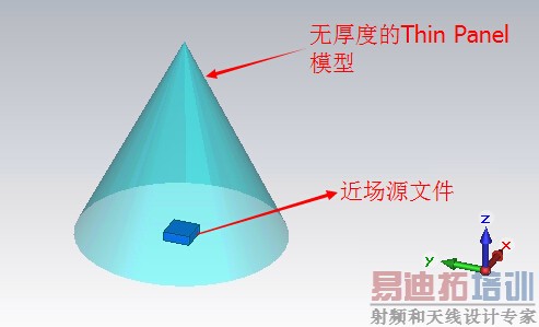 3、远场源元件有一半不在算例所说的天线罩(内)--这个只是做一个简单的例子,粗糙的很,实际肯定不会这样,但我想就算不在罩内,那Thin Panel的罩子也不会当成PEC吧?