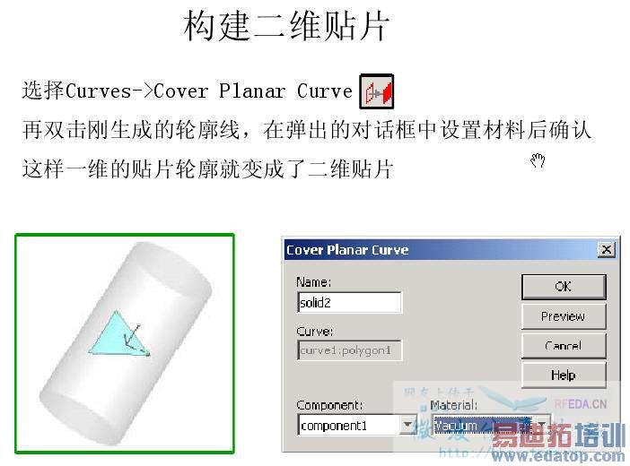 下来要建一个圆柱体,把天线贴上去再看性能,但是这个天线怎么贴到圆柱体的侧面上,怎么实现天线与圆柱体的共形。