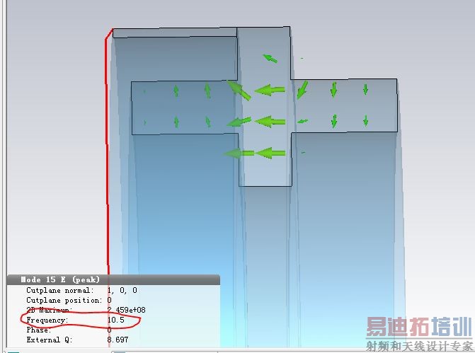 如上图所示,在模型窗口里边第15个模式显示的频率为10.5GHz,而仿真完成后右下角显示第15个模式的谐振频率为9.165,不知道是什么原因?大家有没有遇到这种情况。注:我用的是CST2012