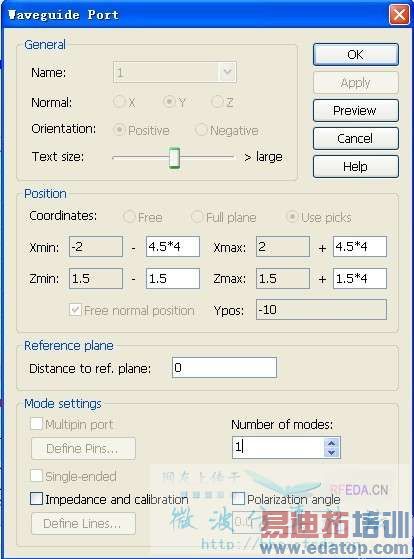 从侧面看的模型如图1,介质基板厚度为1.5mm,微带线及地的厚度为0.035mm;我根据help里面的端口设置(图2),我设置成图3所示,不知道对不对,请帮忙指点,谢谢