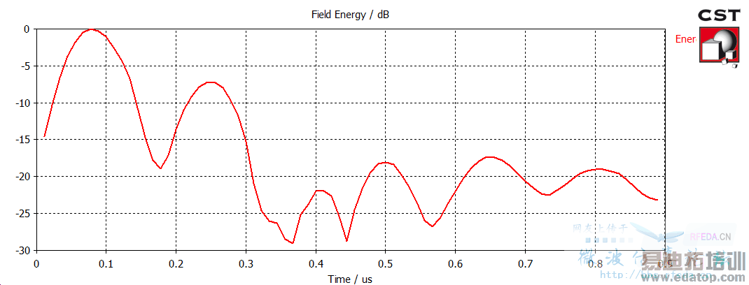 经过漫长的仿真得到能量曲线如下:设置的仿真精度为-30dB,可我看有个帖子里面能量最终是趋近-30dB的,我设置多个脉冲,貌似也还是这样的效果。