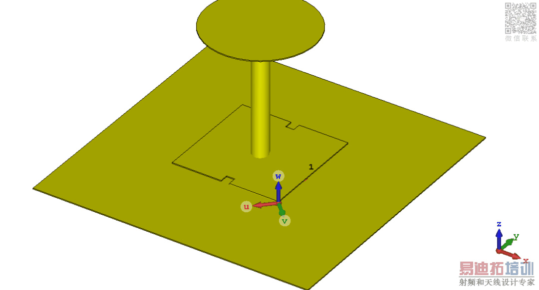 首先先完成仿真实例001:圆极化平板天线仿真01,如下图所示: