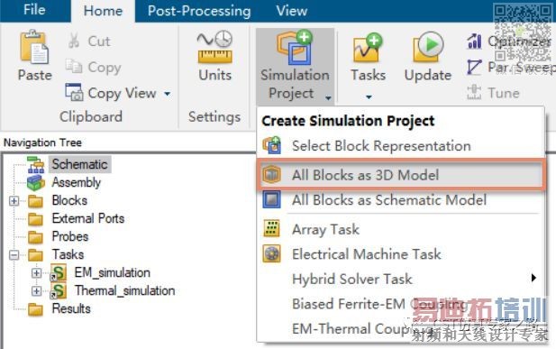 在CST的设计工作室中开始进行多物理场流程的创建。