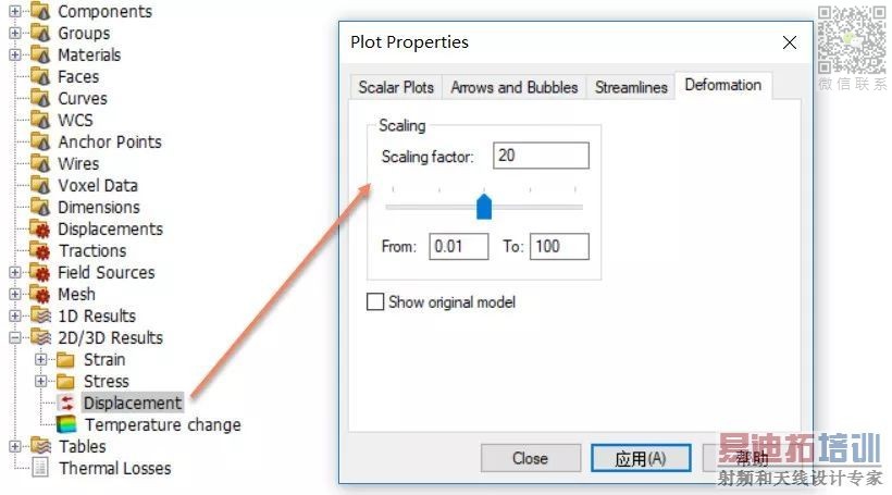 仿真完后点击下图Displacement,显示形变,并把显示放大20倍,如下图所示: