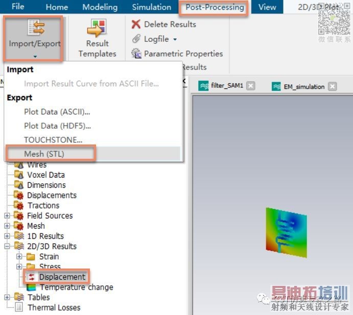 除此之外还可以导出结构形变后的网格,再导入到三维模型中进行仿真。首先我们将形变的结构选中,再导出Mesh(STL)文件,如下图所示: