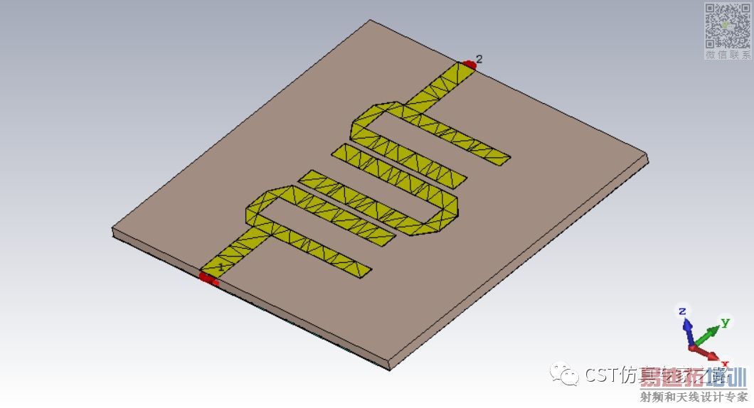 这里我们先创建一个微带线发夹滤波器模型,如下图所示: