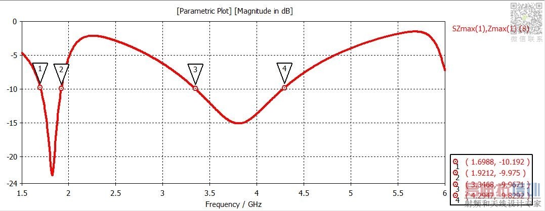 I have simulated a structure in CST and I'm trying to optimize it by writing the optimization codes in Macros of the software. the problem I have faced is that how can I write the code for calculation of bandwidth for the plot like the one below. I Want the 10dB bandwidth of the of between points 3 & 4. I cannot limit my frequency sweep because this band shifts to other frequencies while optimization. The code I have used for is the this: