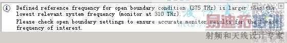 用open以及open add space边界条件的时候请注意,这种边界条件默认的只适用于中心频率,如果自定义非中心频率的monitor,请在边界条件设置框里有专门针对open边界的特殊设置,将里面改成center and monitors 就不会出现上面的警告了。