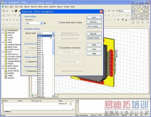 在左侧导航树中选择 Examples → CST MWS Examples → SPICE Model Extraction Examples,这里选择IC Package。