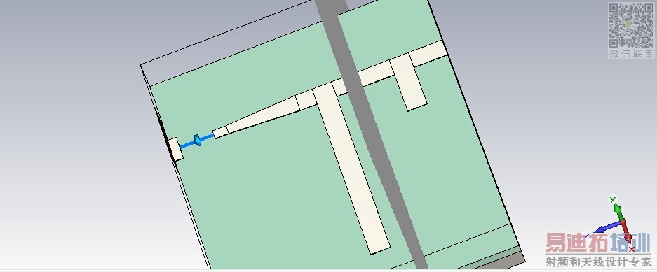第二步:根据ADS的结构在CST上建模,其中由于第二个端口为复数,利用lumped element实现,lumped element选择RLC串联,具体的R、C以及第二个端口的宽度,由ADS仿真出来。