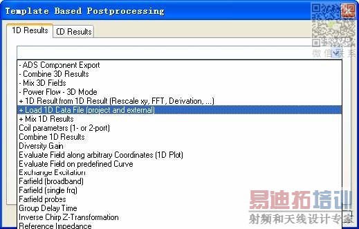 5) 求解完成后,打开后处理模板,选择 1D Results,在下拉菜单中选择+Load 1D Data File (project and external)
