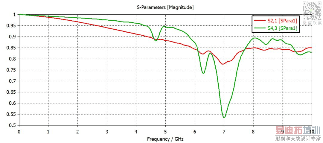 点击Update启动仿真,此时得到的新的S参数中,S2,1就是差模传输,S4,3是共模传输。